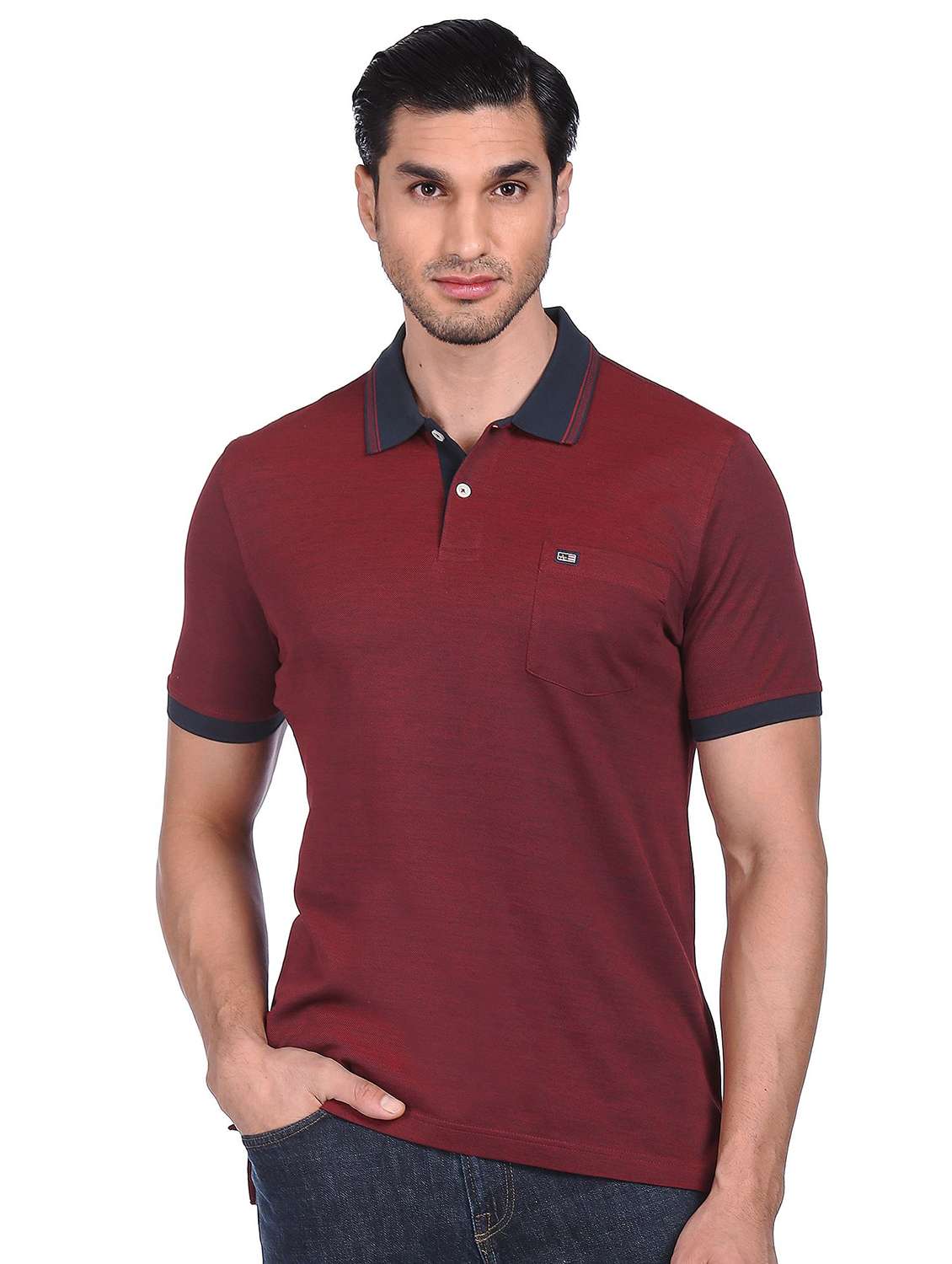 burgundy solid polo t-shirt