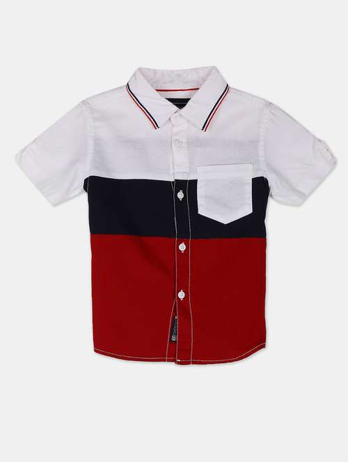 red color block shirt