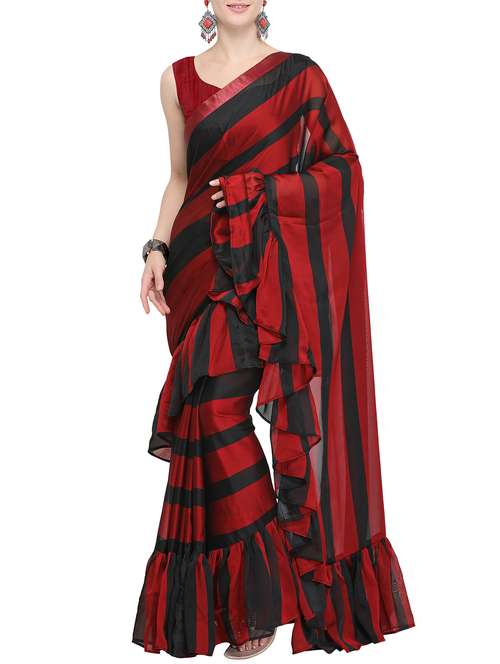 - » striped printed ruffled saree with blouse