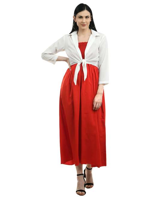 red solid a-line dress set
