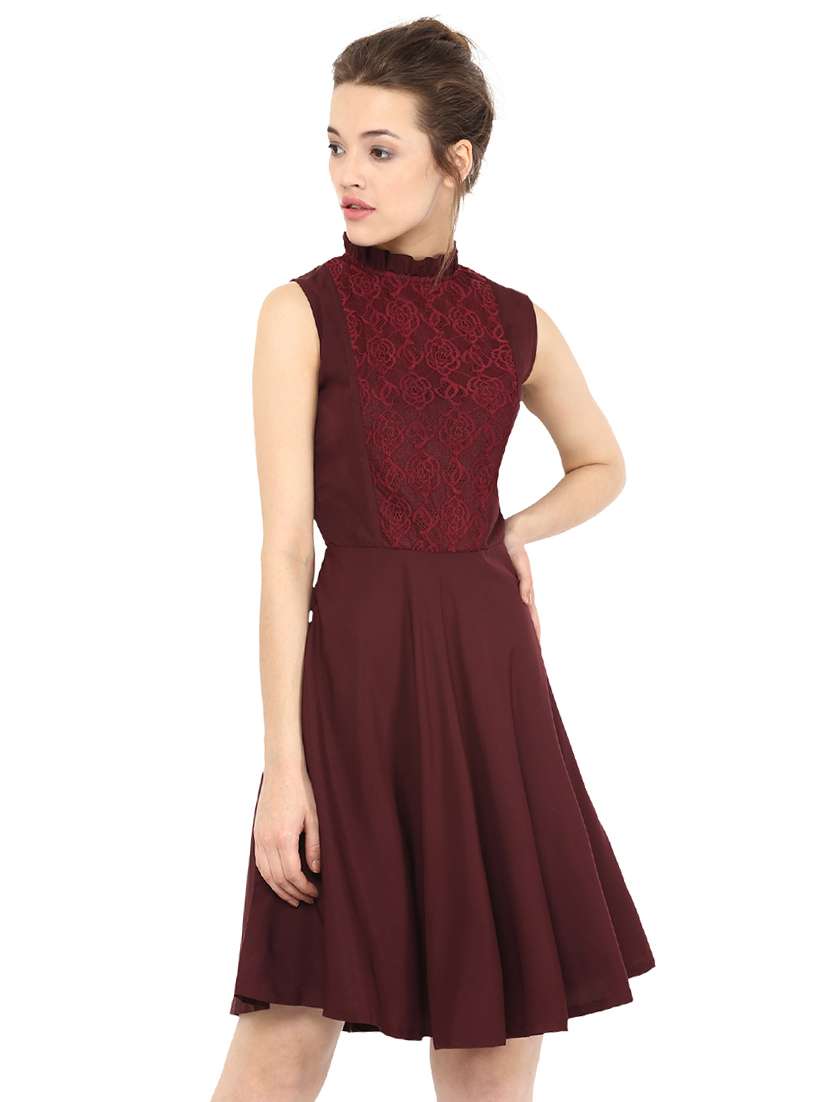 - » dark red crepe fit & flare dress
