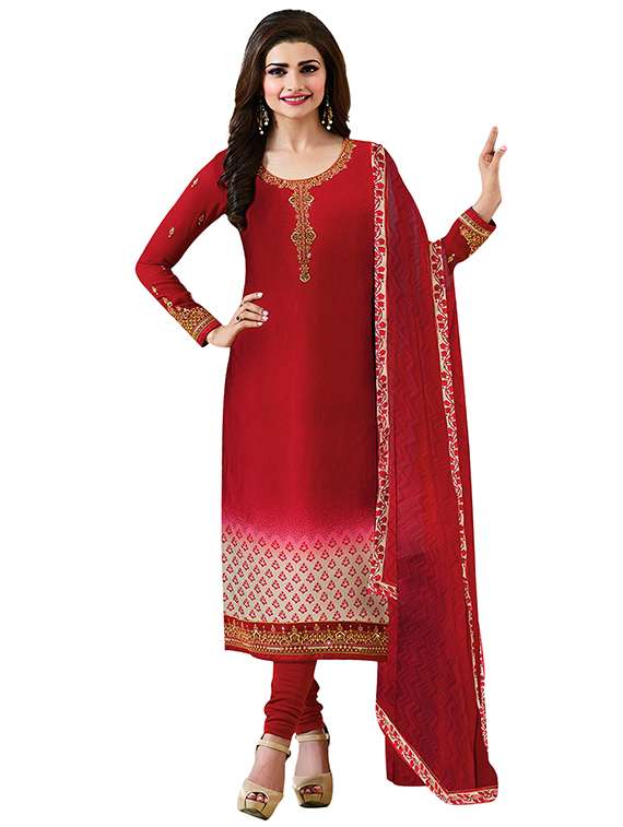 - Find versatile complete set of semi-stitched suits in trending designs in red colors suitable for a number occasions.