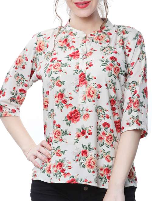 - Opt for this top made up of crepe material and get it in a varied neck design.