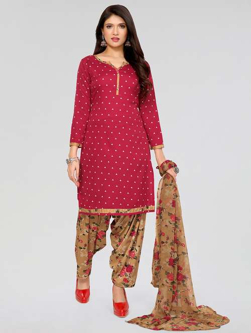 - Look ultra gorgeous in unstitched suits from THREADS and grab these beautiful suits in red colour.