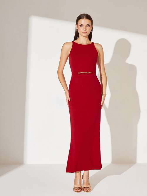 - Looking for some awesome collection of dresses? Well, lay your hands on this dress from Miss Chase and also get the option of choosing from red colour.