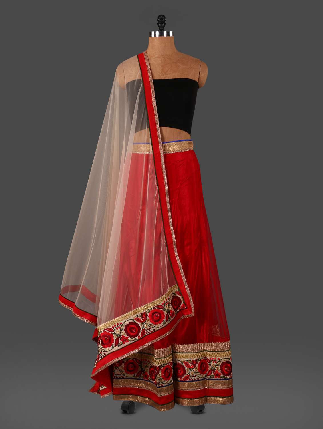 red embroidered georgette lehenga set