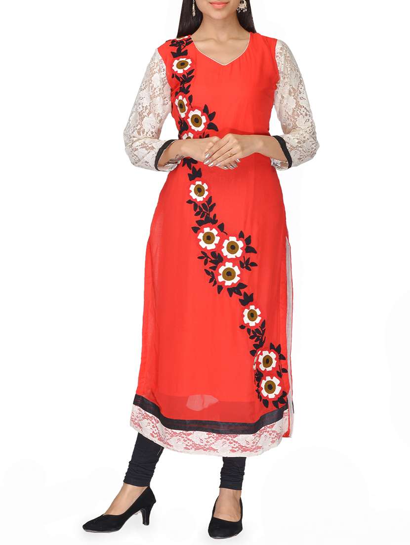 - » red faux georgette kurti