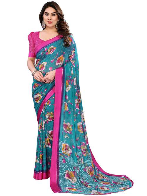 Add a dash of elegance and modern charm to your ethnic wardrobe with this Women's Printed Pushpa Saree, designed in a flowy georgette fabric and adorned with silver stripes. The rich satin border gives the saree a sleek, polished look, making it a standout piece for all your special occasions.Lightweight and graceful, this saree drapes beautifully, offering both comfort and style. It comes with a matching unstitched blouse piece, allowing for custom tailoring to your unique fit and design preferences.