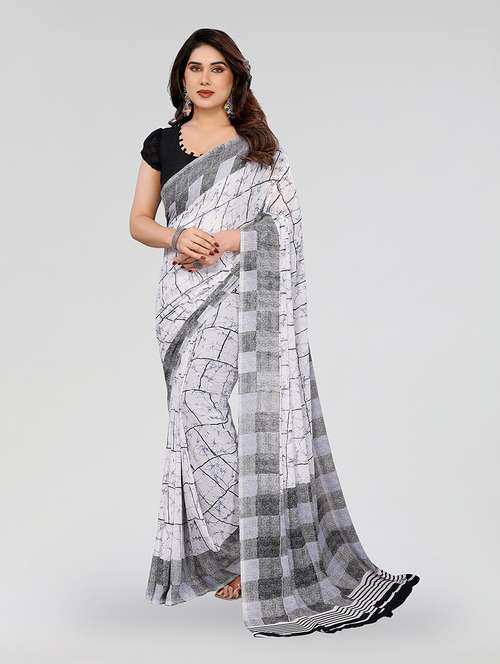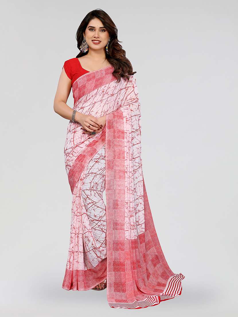 Step into everyday elegance with this Modern Geometric Motif Georgette Saree, crafted for the woman who loves clean lines and contemporary style. The lightweight georgette fabric offers a breezy, comfortable drape perfect for daily wear. Featuring bold and stylish geometric patterns, this saree brings a modern edge to your wardrobe. Ideal for office wear, casual outings, or daily use, it comes with a matching unstitched blouse piece to complete your chic, minimal look.
