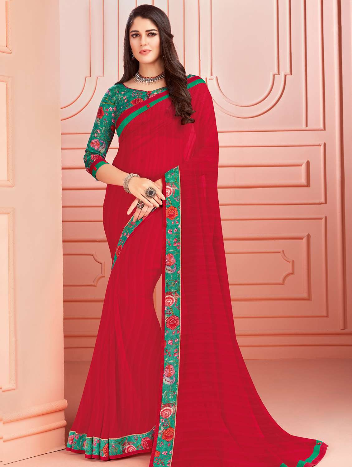 floral bordered saree with blouse