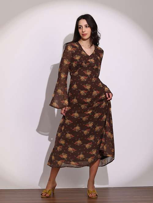 - Dress up in a soothing pattern and don this dress made of georgette material.