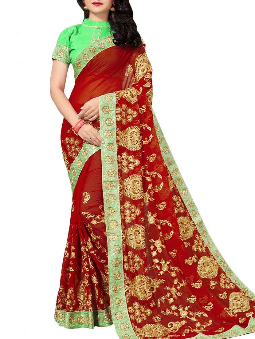 - » paisley red embroidered saree with blouse