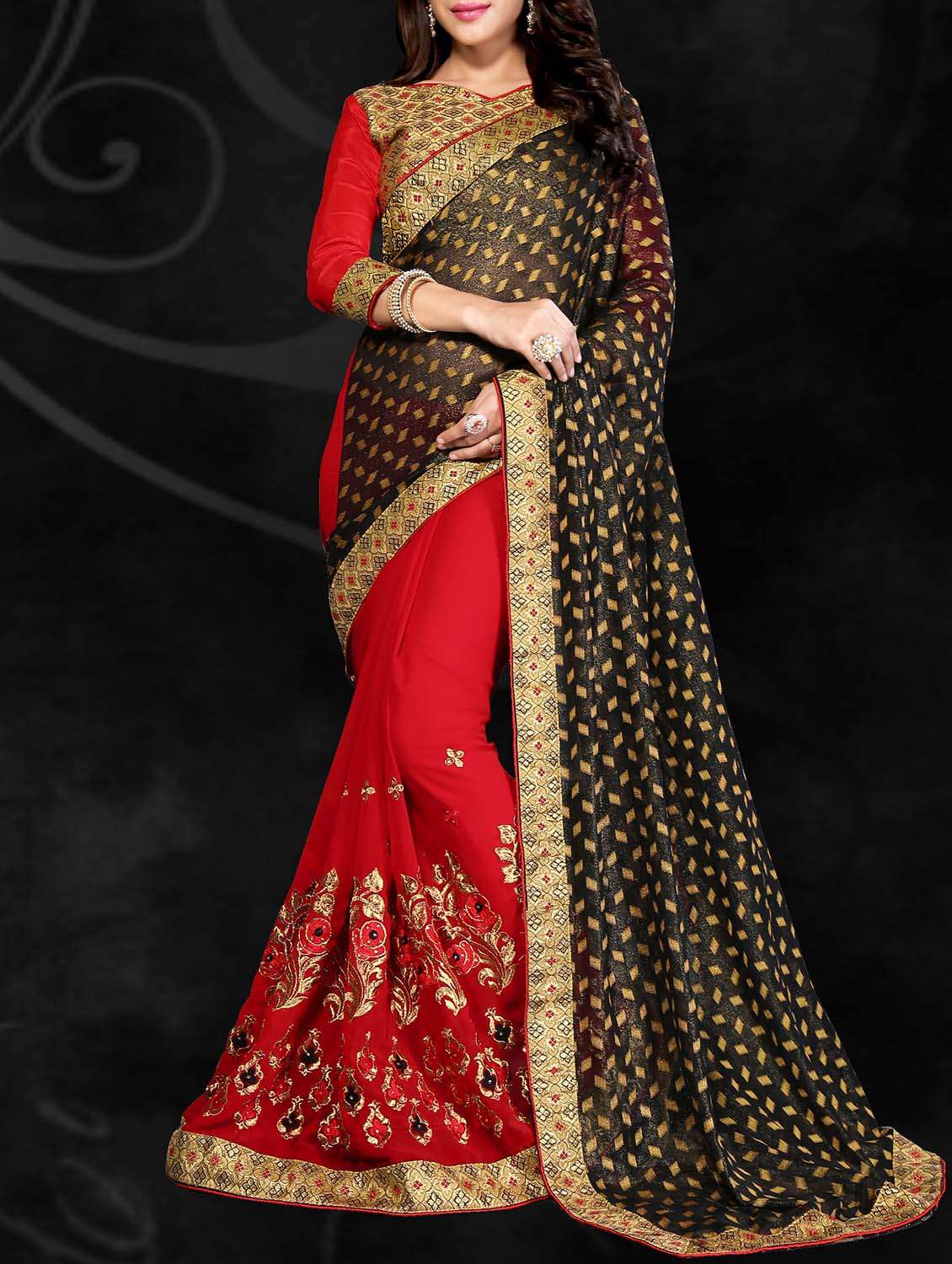- » half and half embroidered saree