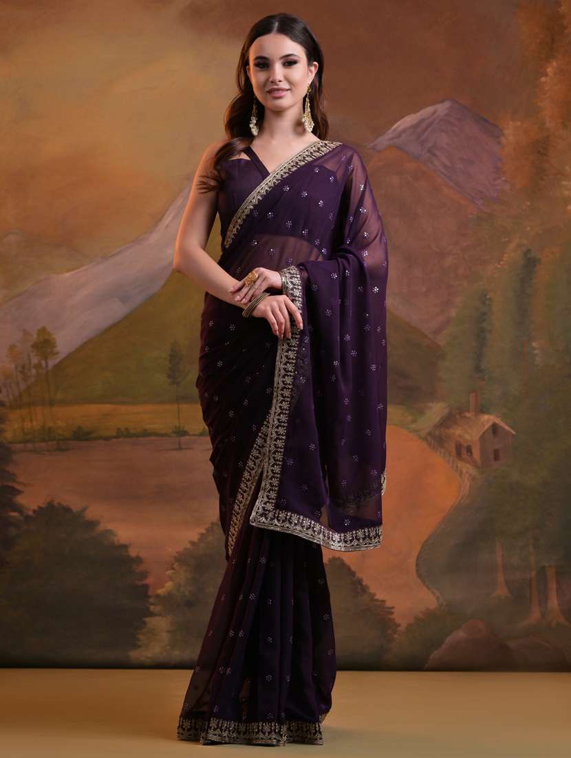 women burgundy sequin work embroidered saree