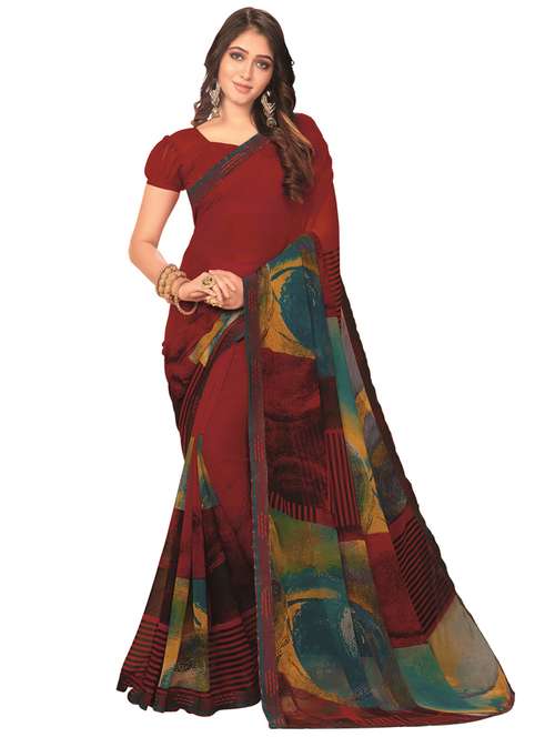 - » red georgette printed saree with blouse