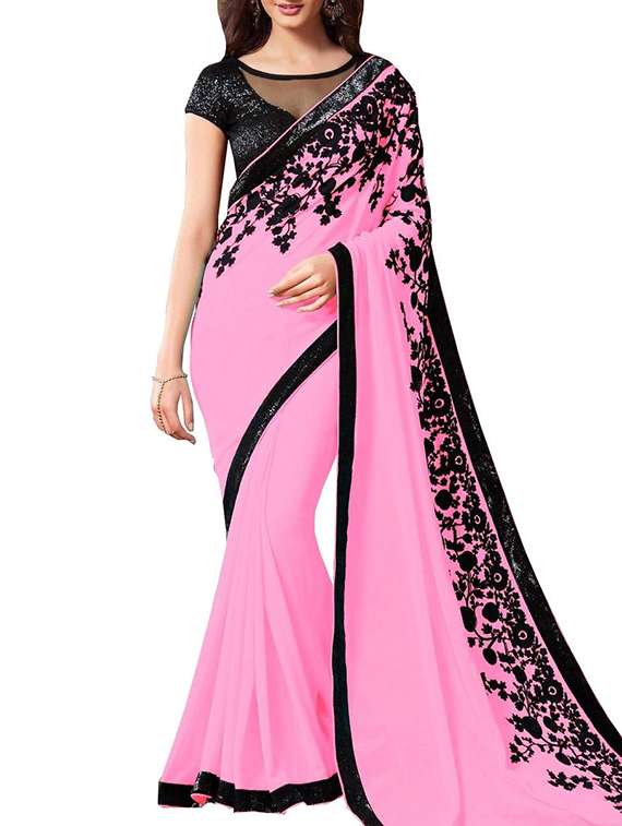 red georgette printed saree with blouse