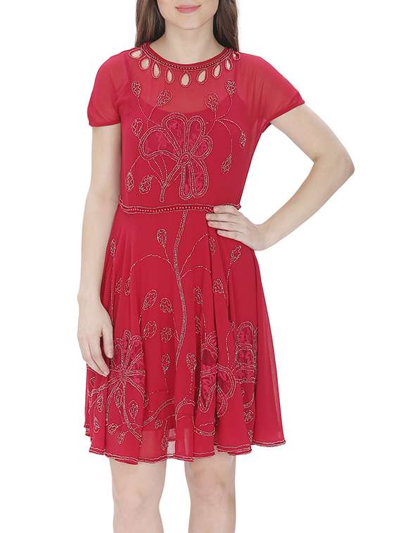 - » red georgette fit & flare dress