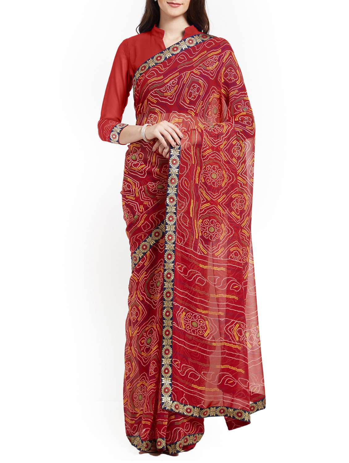 - » red georgette bandhani saree with blouse