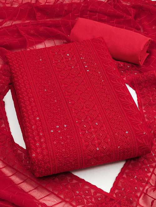 - Look ultra gorgeous in unstitched suits from Peachmode and grab these beautiful suits in red colour.