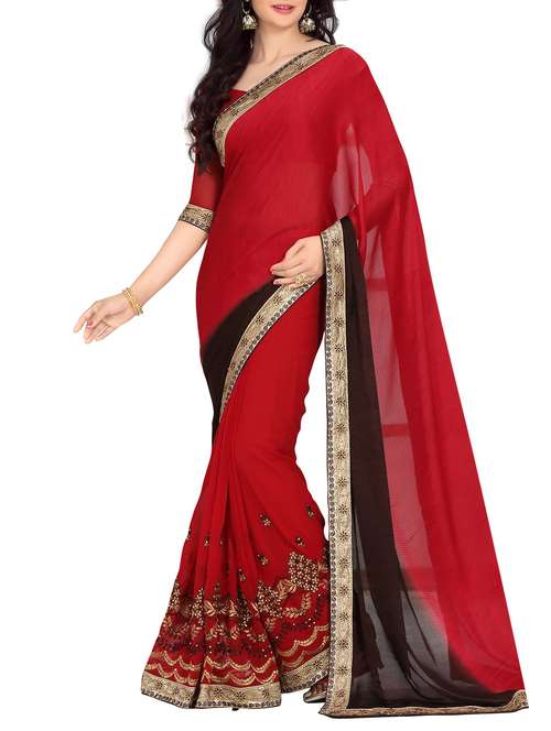 - » red georgette saree