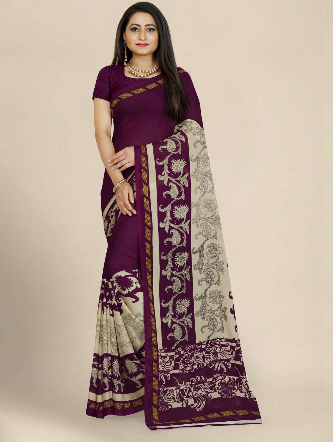 - » women's floral burgundy colored saree