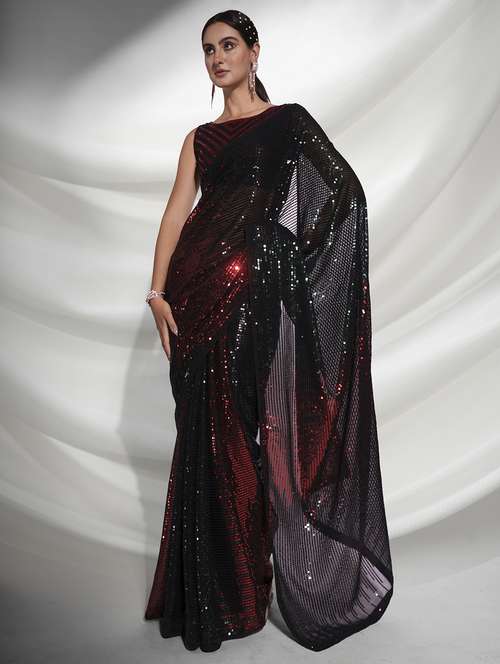 women red sequin work party wear saree with blouse
