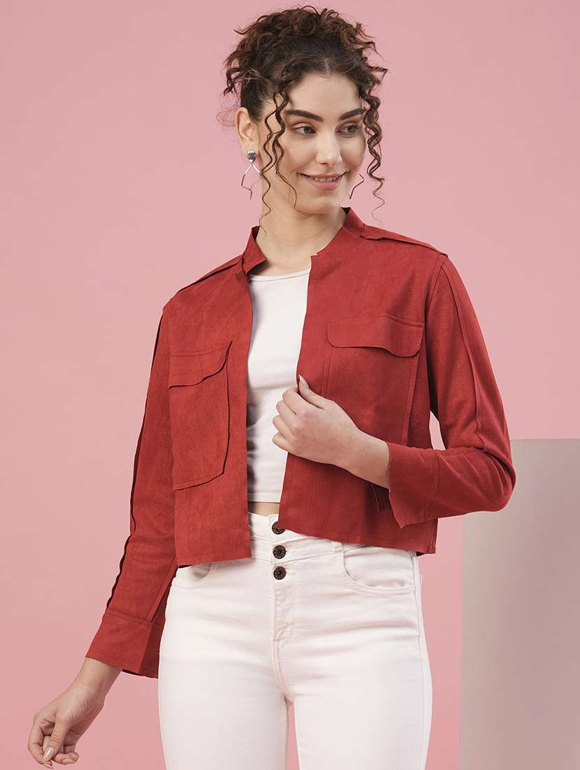 - » women solid red regular jacket