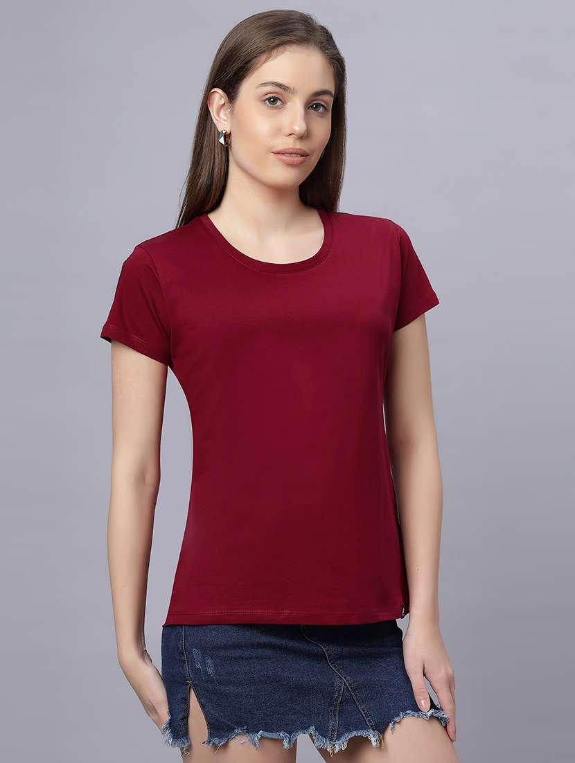 - Get ready to adorn some funky tees! LimeRoad brings to you the finest collection of tees from QUIRA and that too in maroon colours.