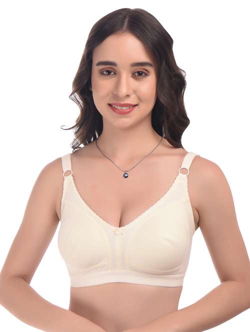Details & Fabric: This bra is made of Cotton-Hosiery, everyday womens T-Shirt bra.The Full Coverage D Cup Wide Strap Cotton Hosiery Bra is designed for comfort, support, and coverage. It features a full coverage design with a D cup size and wide straps 3 hooks and 3 columns . This bra provides a smooth look under clothing and stays in place all day with its wide straps. Ideal for women with a larger bust seeking a comfortable and supportive bra.The cotton hosiery material provides a soft and breathable feel, making it suitable for all-day wear.