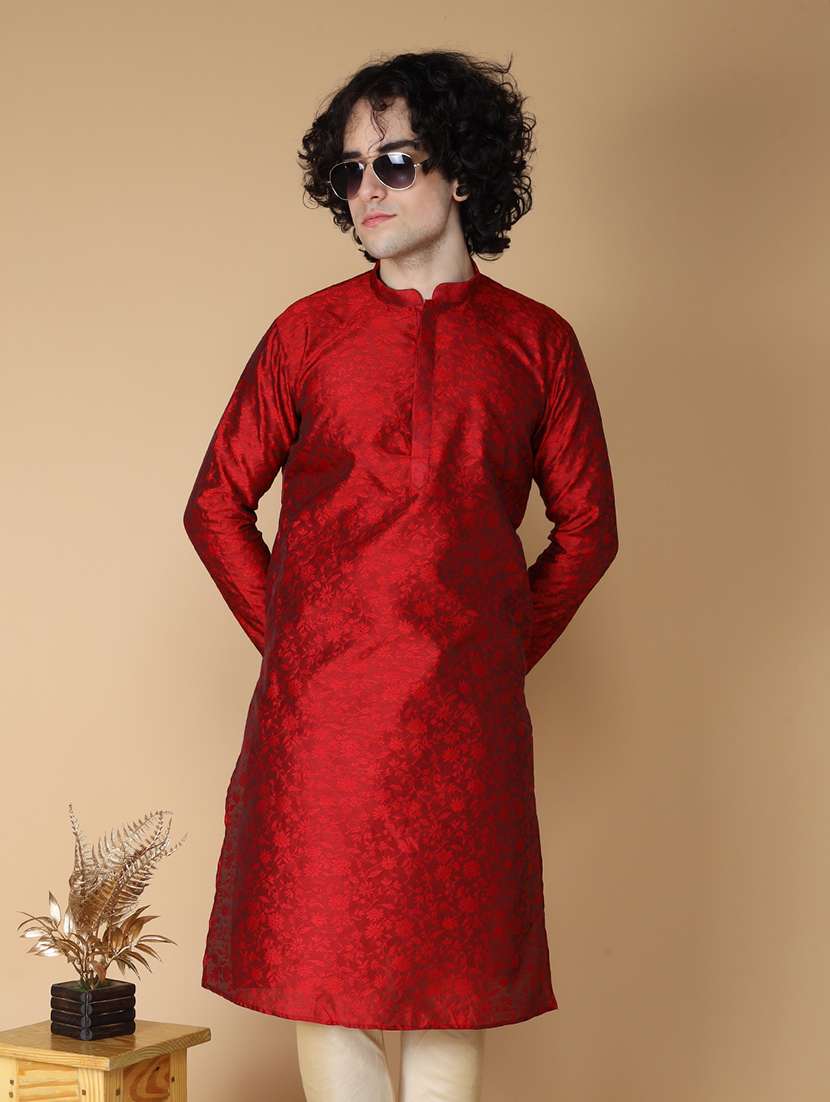 mandarin neck self design long kurta - 20011653 - Very Small Image - 1