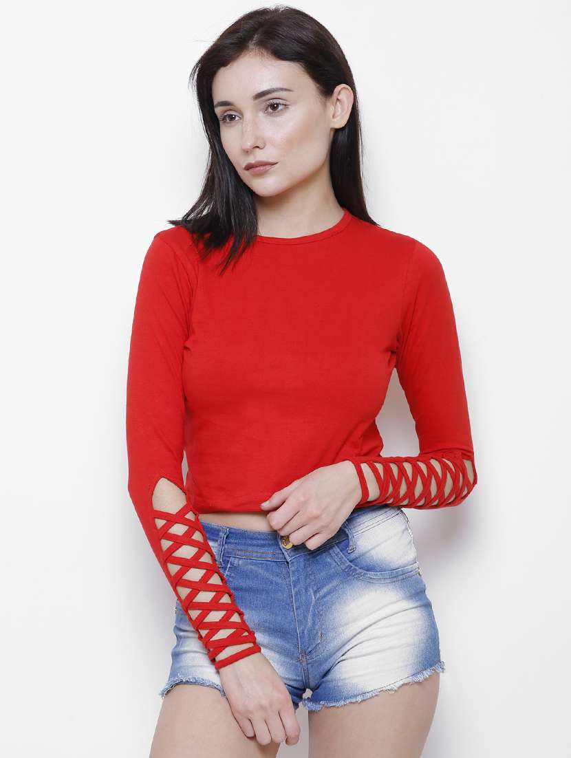 criss-cross detail long sleeved top