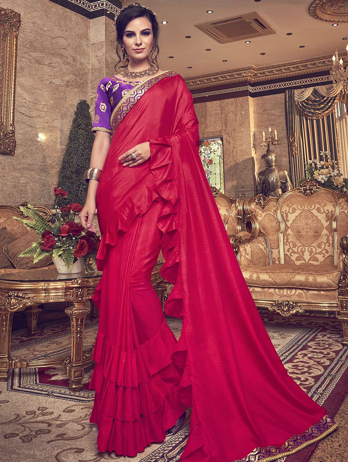 - » ruffle lace border fusion saree with blouse