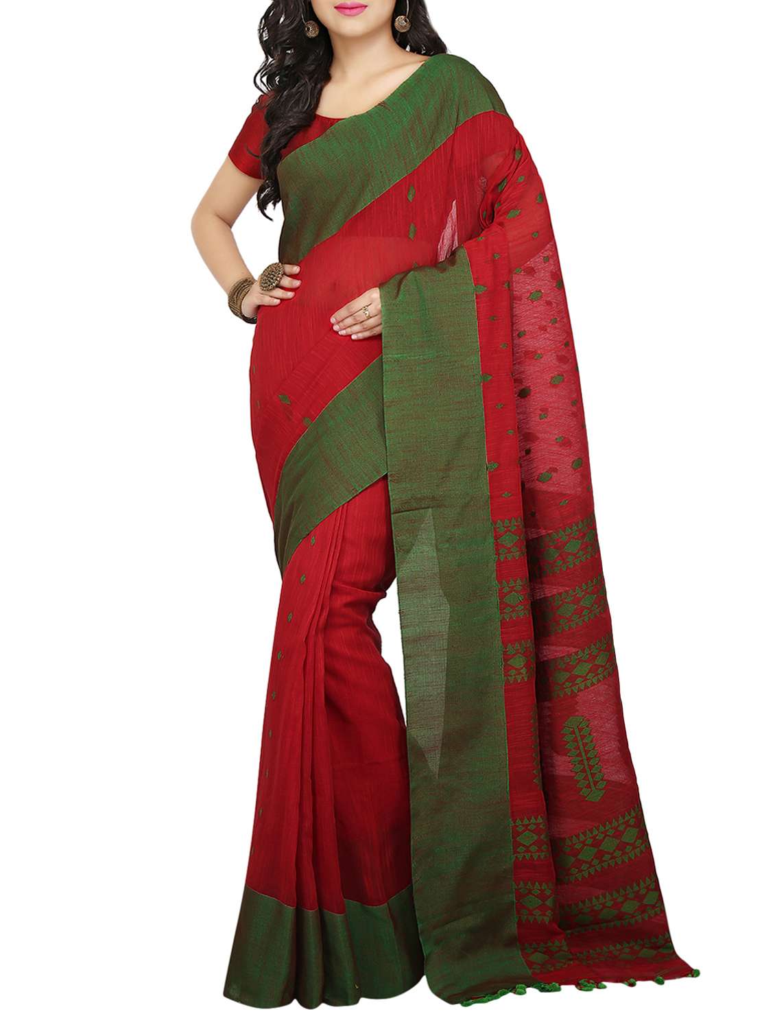 - » contrast bordered handloom saree with blouse