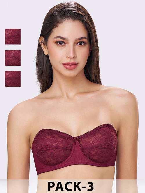 CITRA Breathable Lace Strapless Bra – Wired, Multiway Straps Pack Of 3