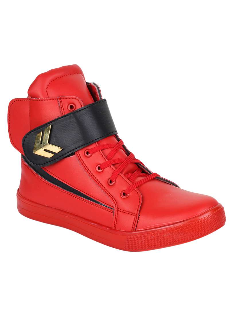 Shoetoes Men's Red High Top leatherette Sneaker Shoes- 7 UK