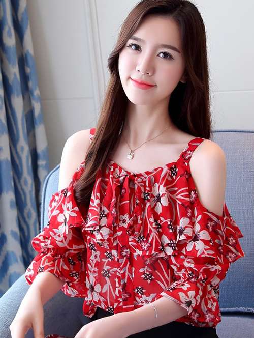 - » ruffled cold shoulder floral top