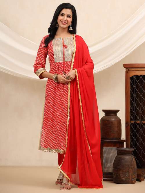 - Find gorgeous sets of ethnic wears in trending designs in red colors suitable for festive wear of occasions.