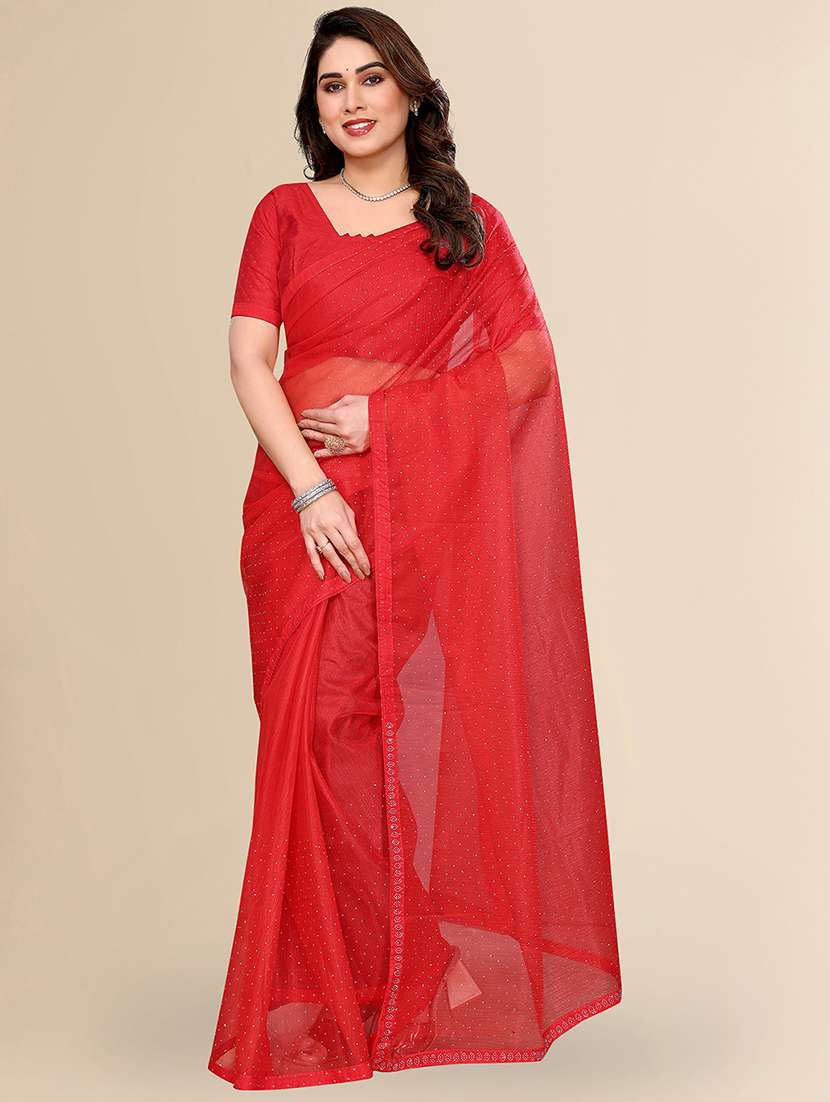 Elevate your ethnic wardrobe with this elegant Women's Net Fabric Saree, adorned with a beautifully crafted lace border for a graceful and contemporary look. Made from premium quality net fabric, this saree offers a delicate, sheer texture that drapes effortlessly and adds a touch of glamour to any occasion. Whether you're attending a wedding, festive celebration, or party, this saree is designed to make you stand out. It comes with a matching unstitched blouse piece, allowing you to customize the fit and style as per your preference.