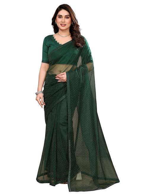 Elevate your ethnic wardrobe with this elegant Women's Net Fabric Saree, adorned with a beautifully crafted lace border for a graceful and contemporary look. Made from premium quality net fabric, this saree offers a delicate, sheer texture that drapes effortlessly and adds a touch of glamour to any occasion. Whether you're attending a wedding, festive celebration, or party, this saree is designed to make you stand out. It comes with a matching unstitched blouse piece, allowing you to customize the fit and style as per your preference.