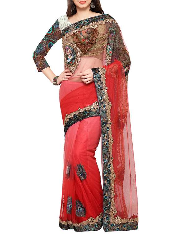 - » red net embroidered saree with blouse