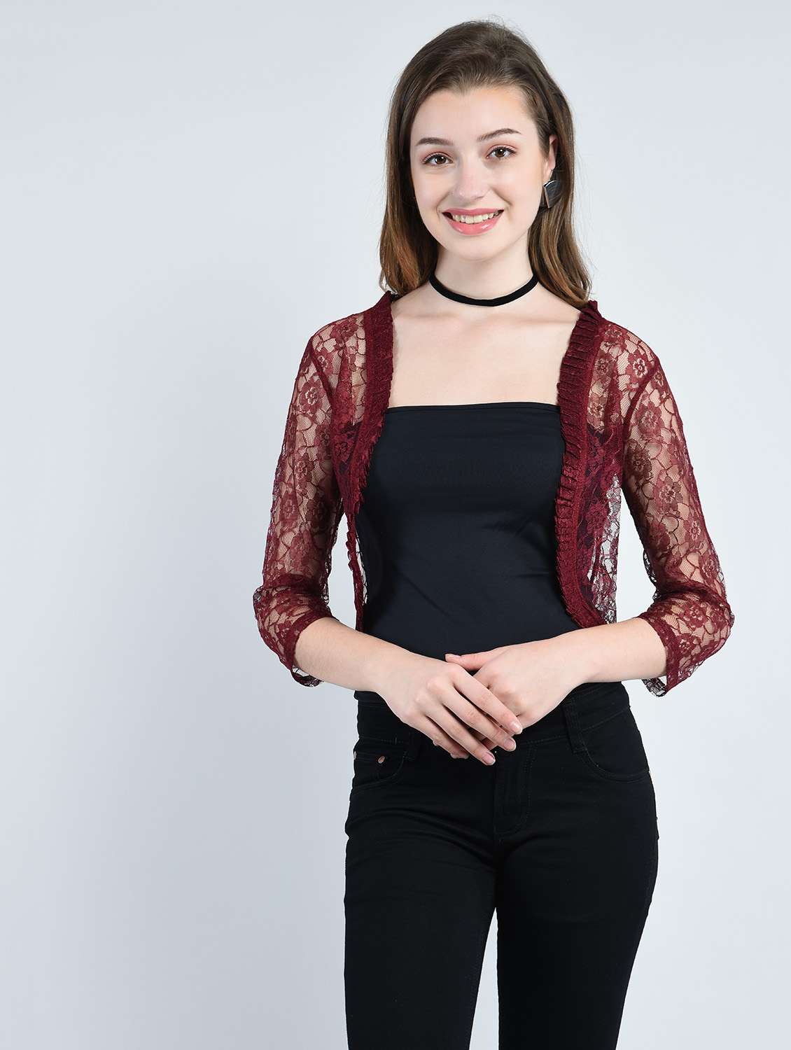 - Gear up to witness some stylish collection of Shrugs! LimeRoad conveys to you the best gathering from Peptrends that come in a melange of red shades.