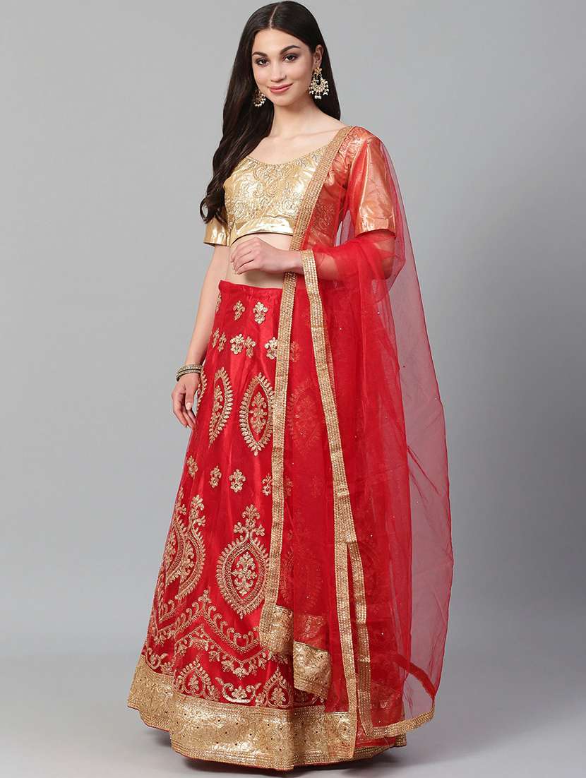 - » red net aline lehenga