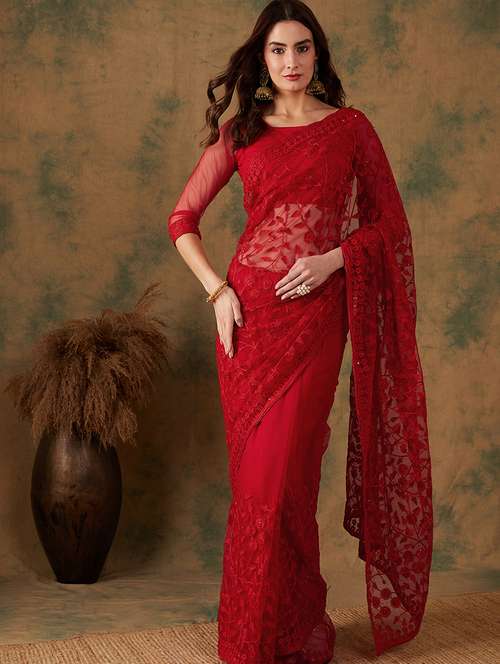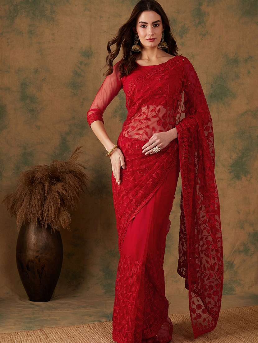 women solid with work embroidered saree with blouse - 21665681 - Very Small Image - 1