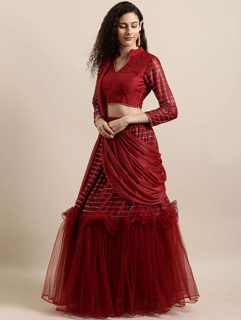 draped fusion saree with blouse