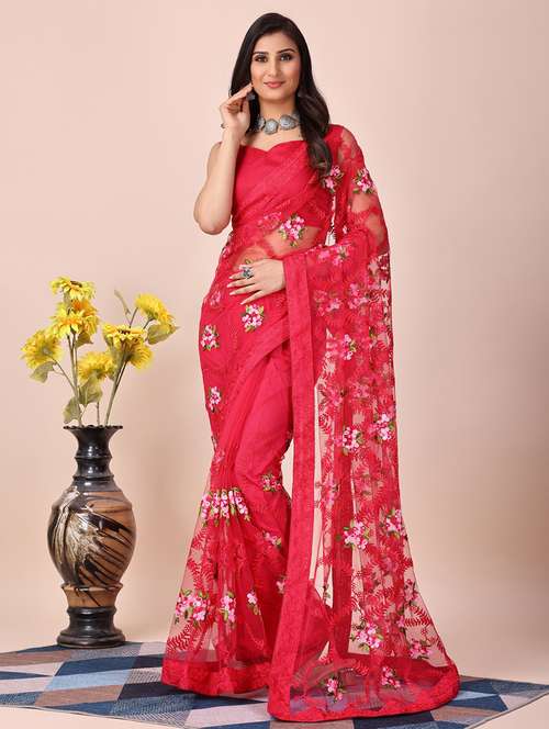 Vairagee Soft Net embroidery saree with Mono Banglory blouse