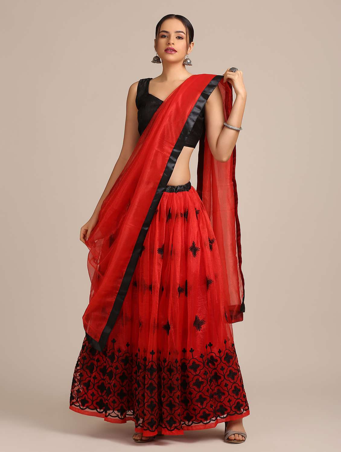 - » red net flared lehenga