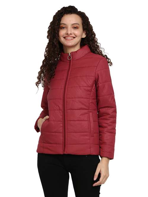 - » women maroon solid long sleeve quilted jacket
