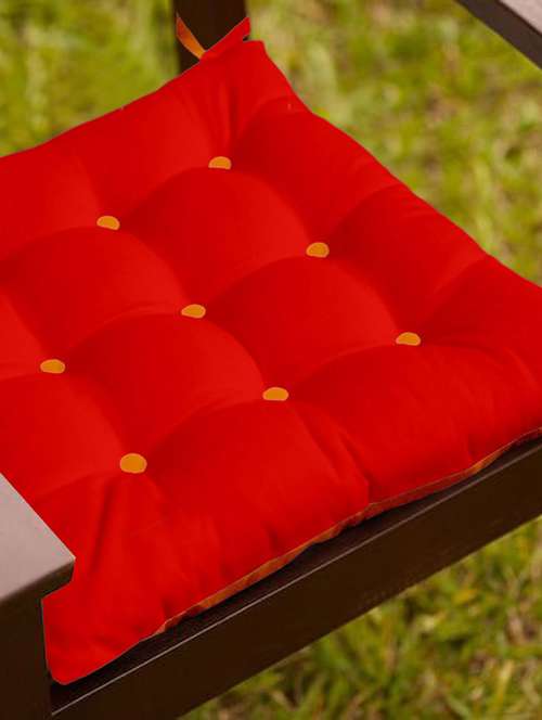 - » lushomes half panama bi-color tomato and sun orange chair cushion with 9+9 buttons and 4 strings
