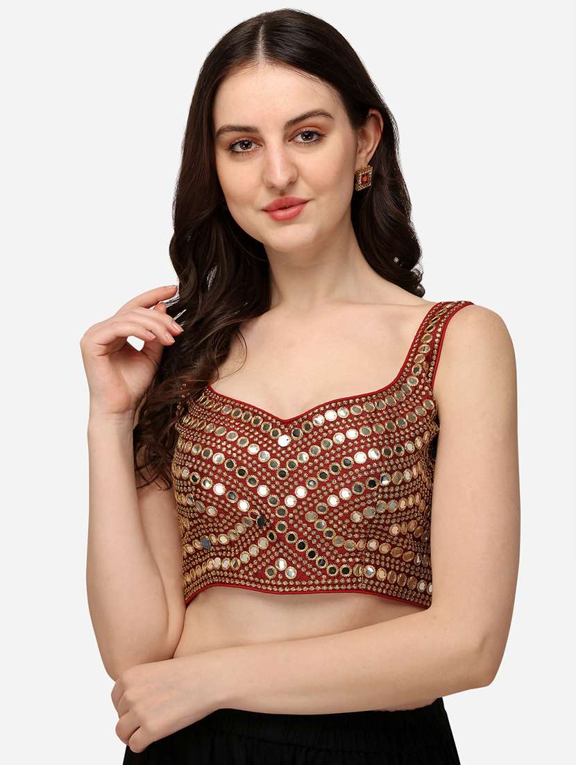 - » red embroidered stitched blouse