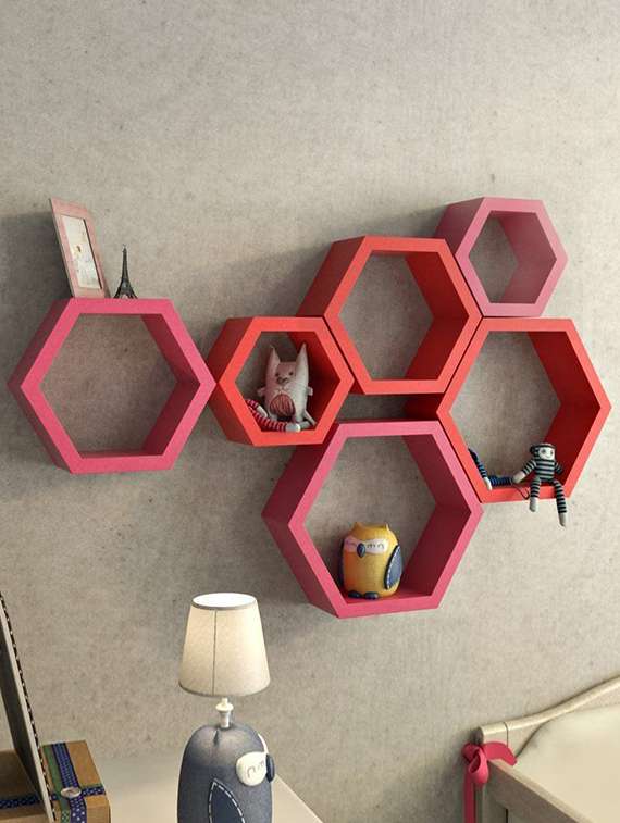 - » home deco hexagon shape storage wall shelves set of 6